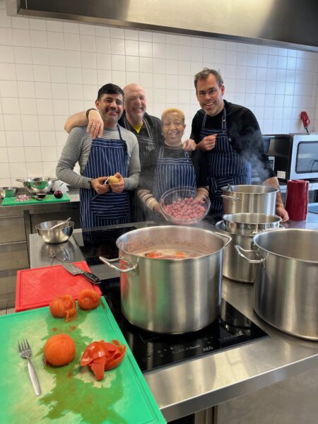 Marien heeft samen met zijn geweldige ‘soep-team’ in wijkcentrum de Walvis, 30 liter tomatensoep gekookt -met en zonder ballen, en vooral met heel veel liefde..
