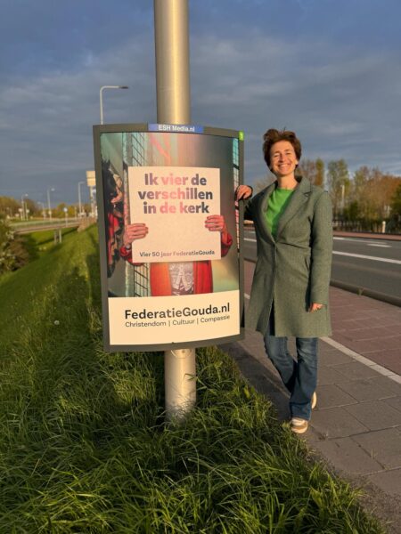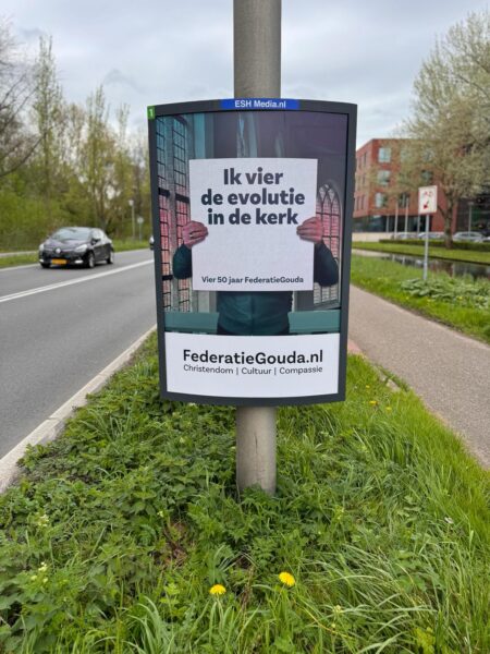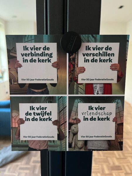 Mijn kerk is jarig. De samenwerkingsgemeente (de Federatie) van Remonstranten, Doopsgezinden en Vrijzinnig Protestanten in Gouda bestaat 50 jaar. Dat wordt o.a. gevierd met deze toffe campagne waarvan we hopen dat het nieuwsgierig maakt en leidt tot mooie gesprekken.